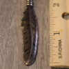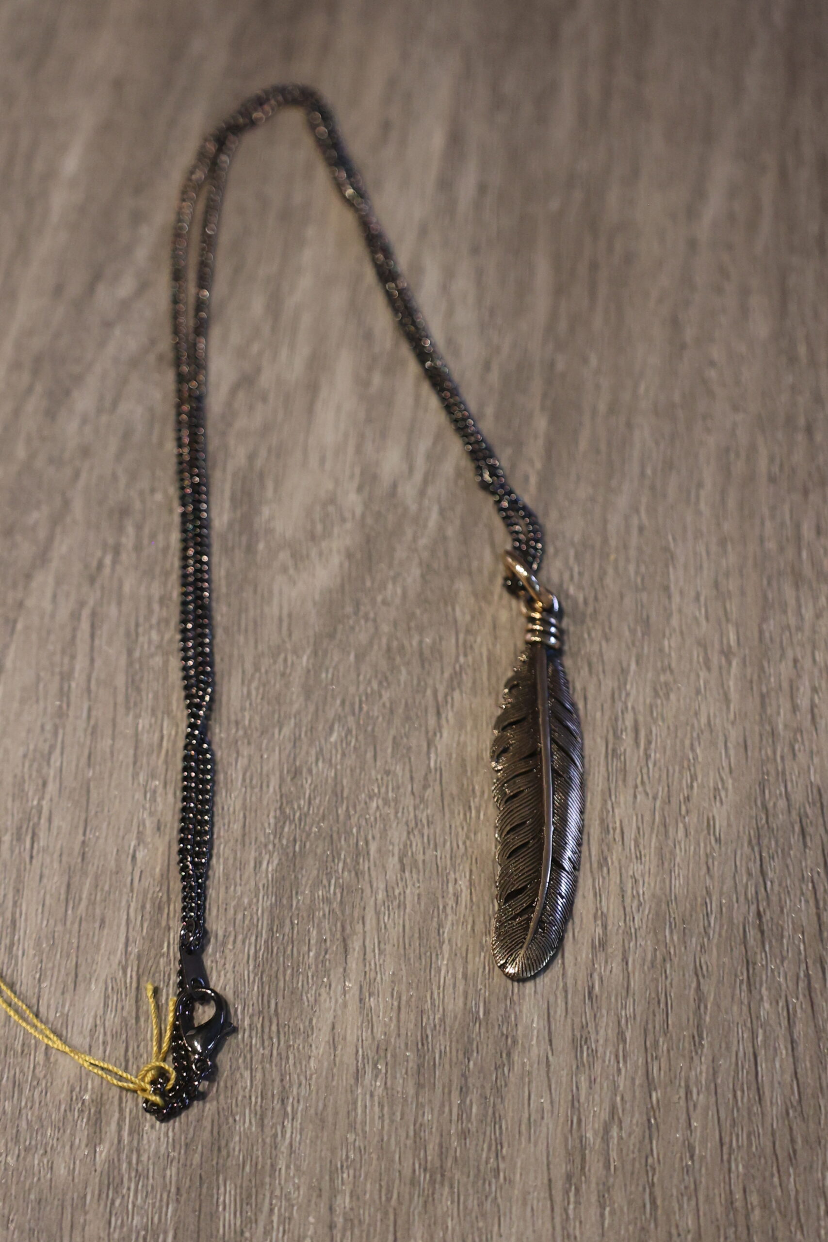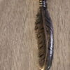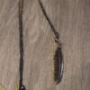Feather in bronze with 24″ chain. Pendant is 3/4 x 1 inch in size.  Hand Cast.