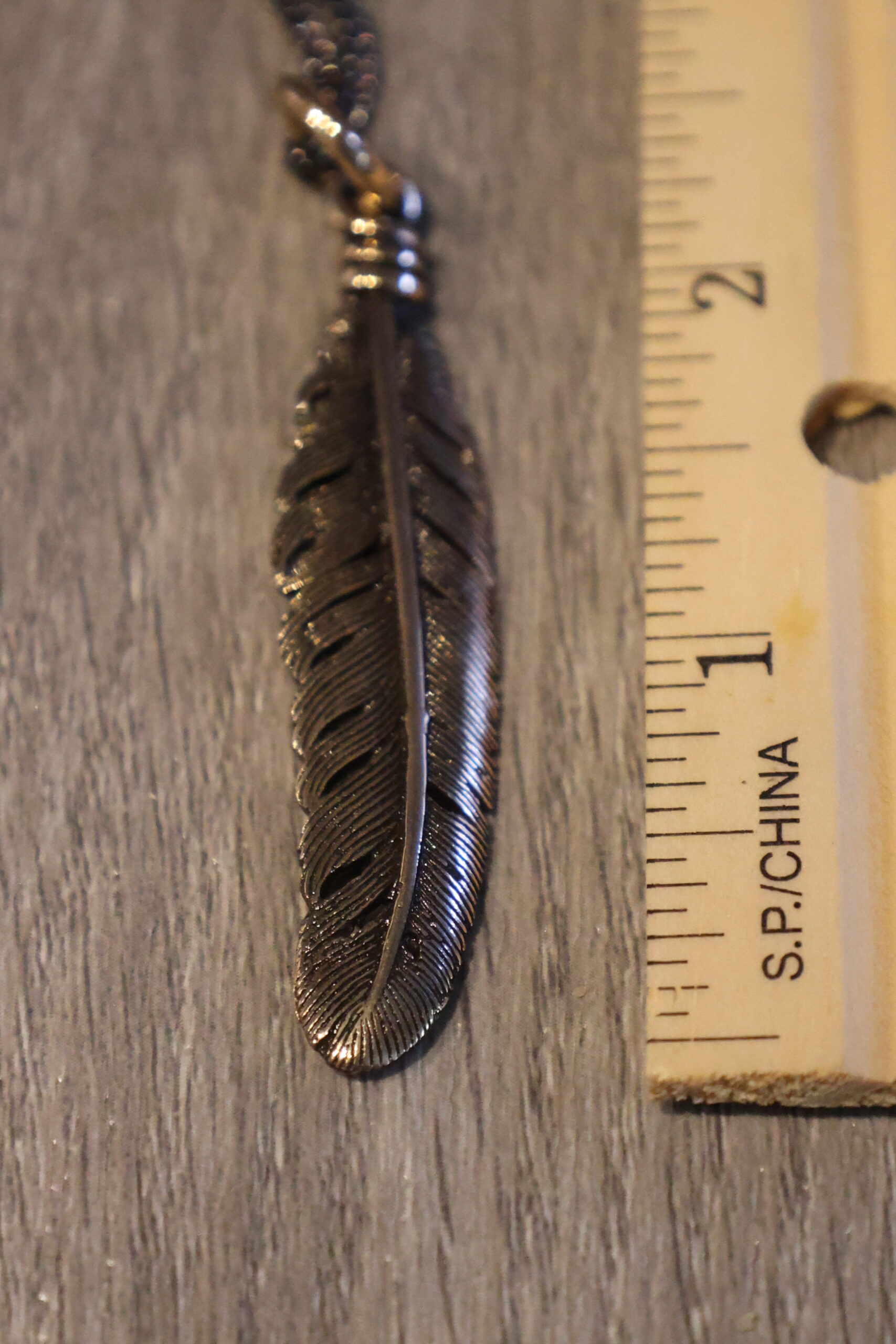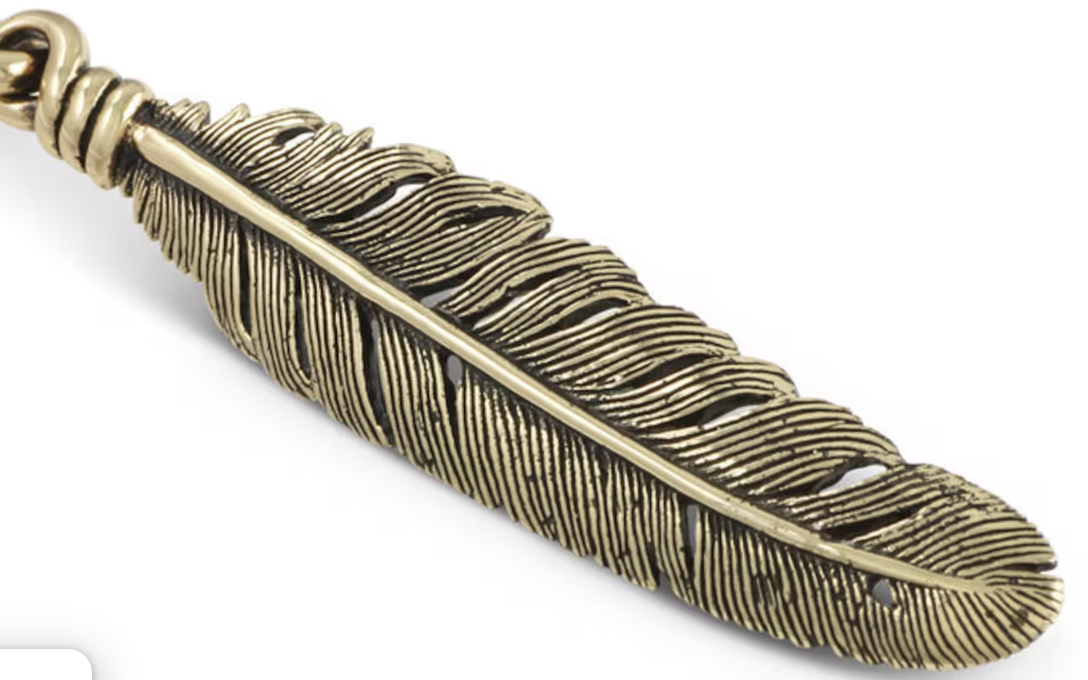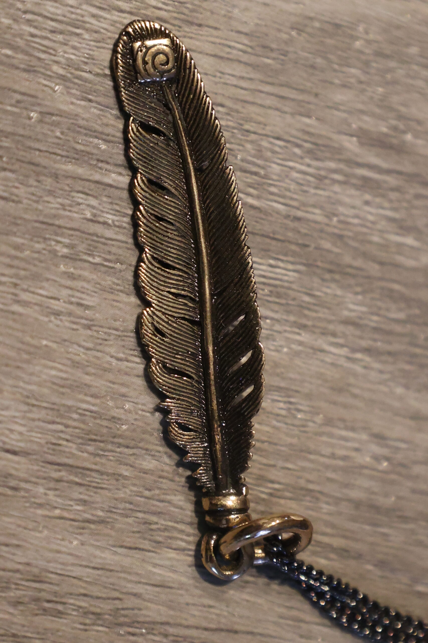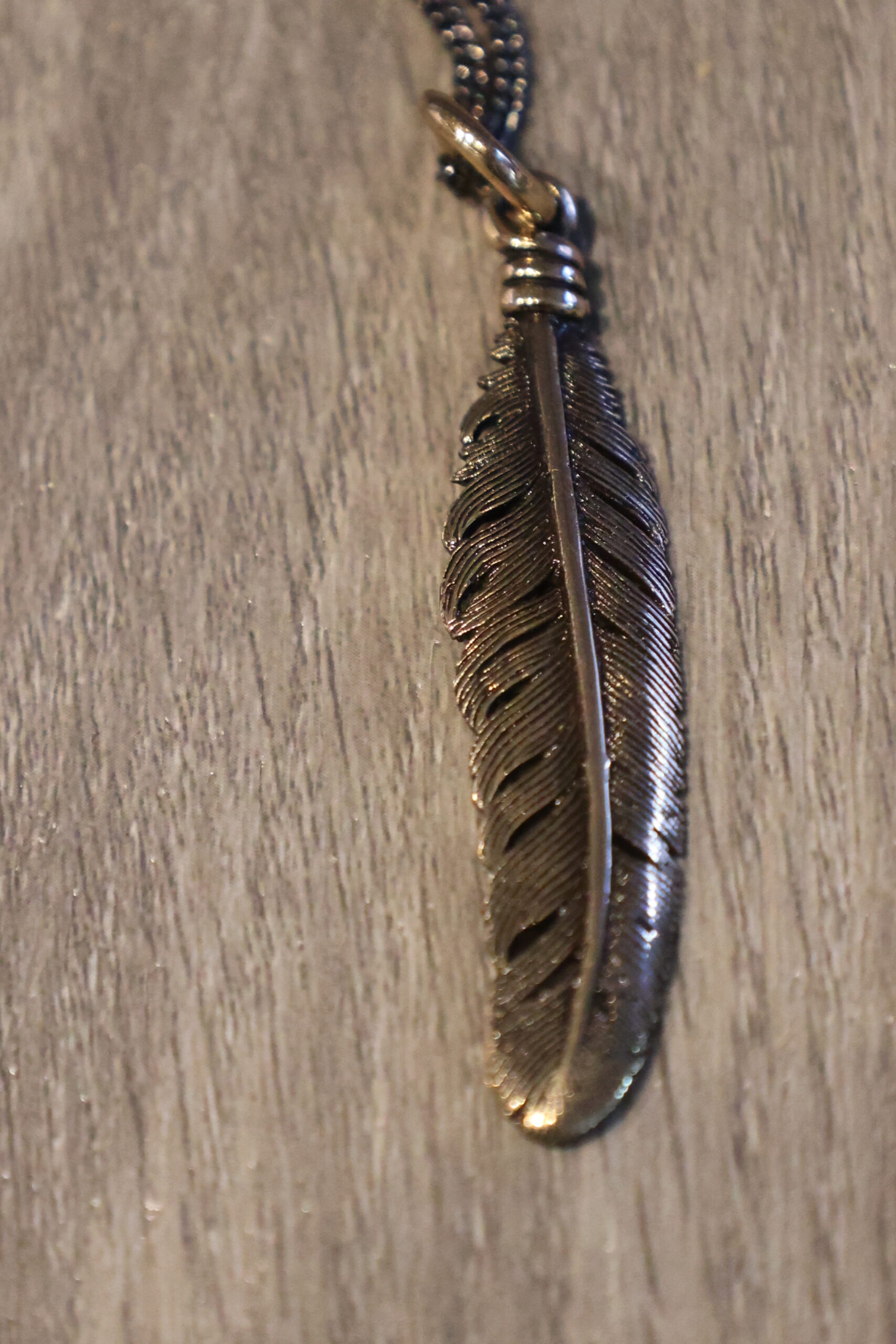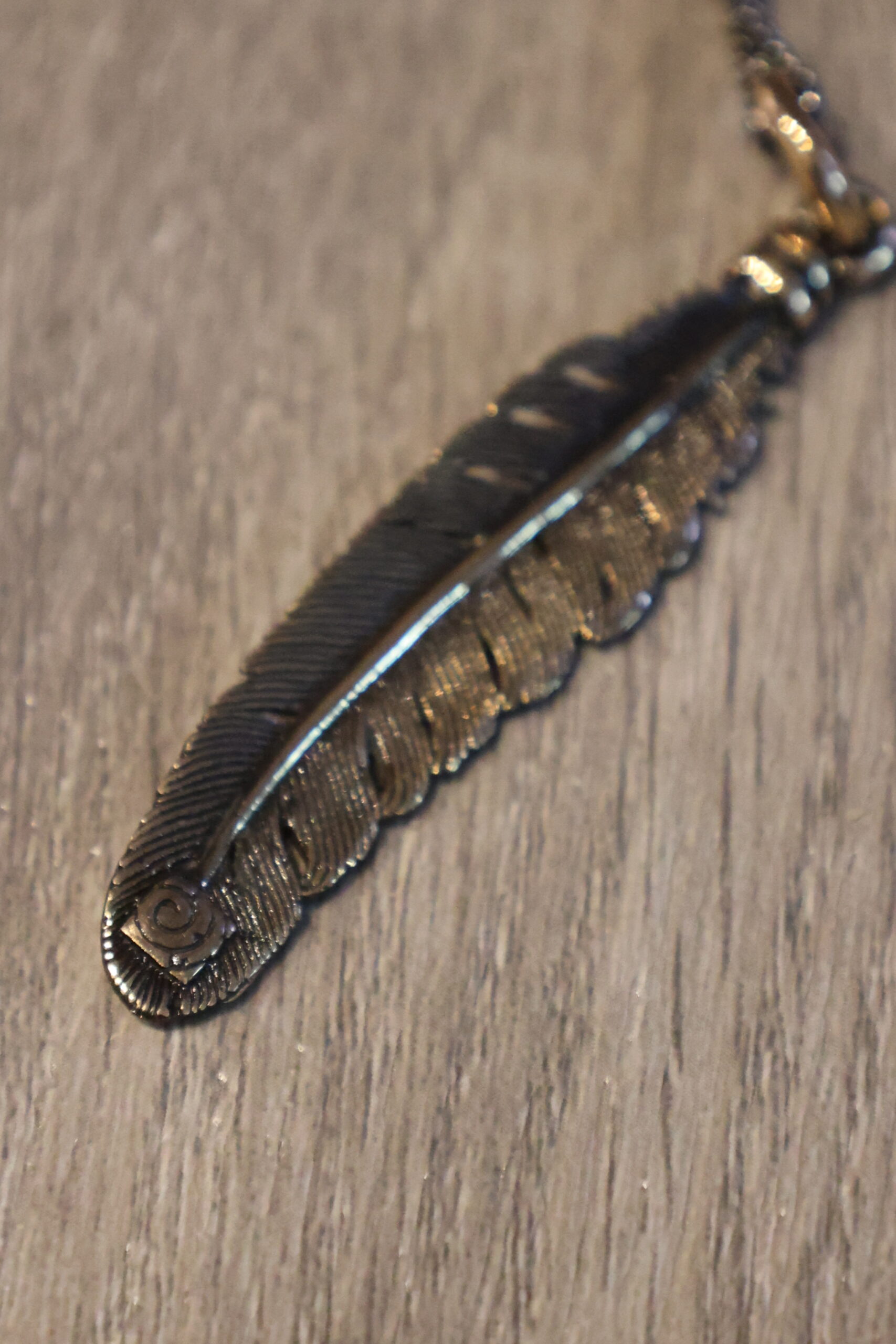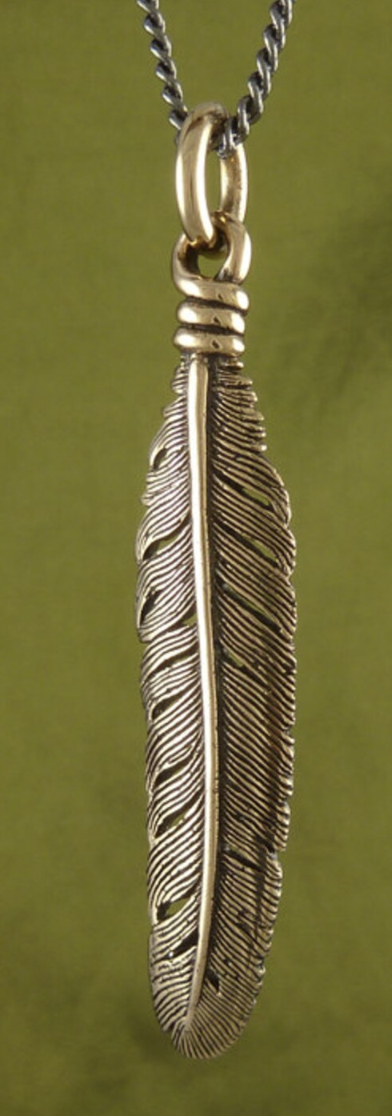 Bronze Feather Pendant with chain ~ Lost Apostle Jewelry