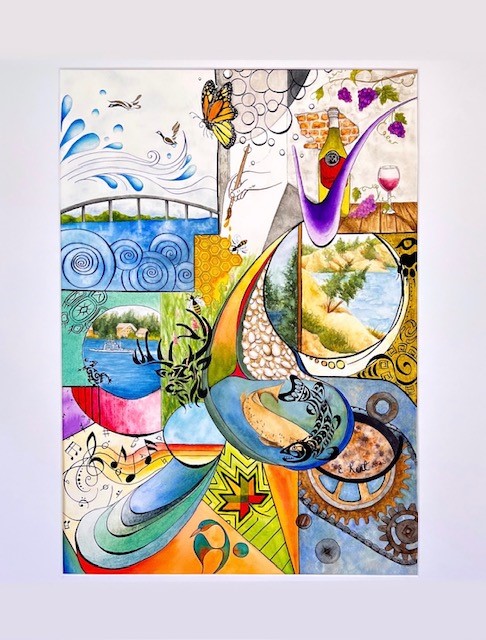 Everything County –  Original natural pigment painting. Please read artists statement as well as have a look at the natural pigment legend she has provided.  This painting is in a silver frame which measures 23×17 inches. The painting is 13×19 with a 3” matte