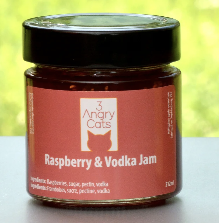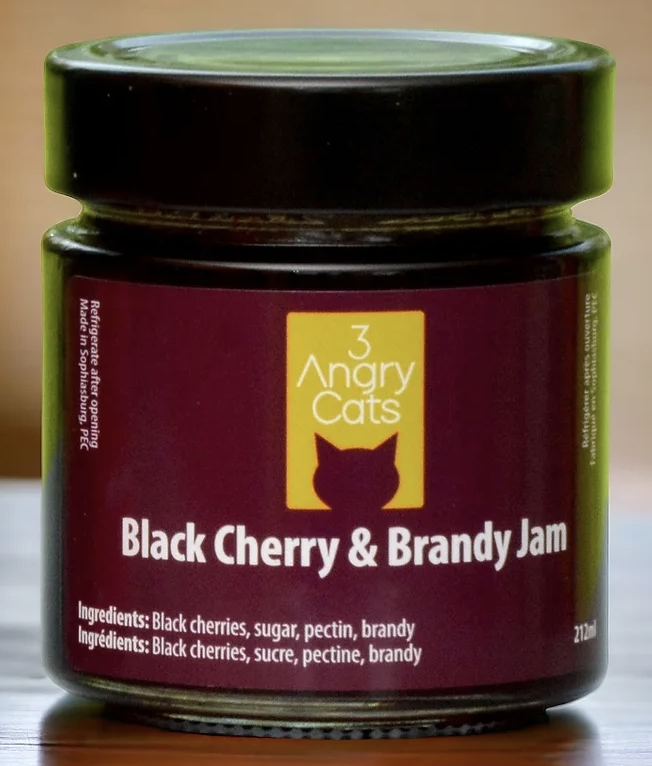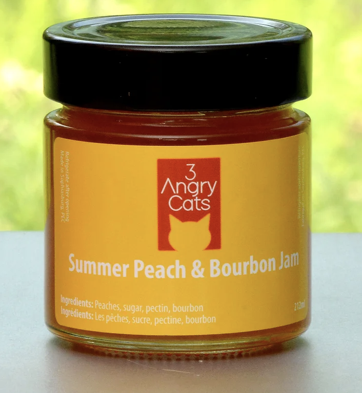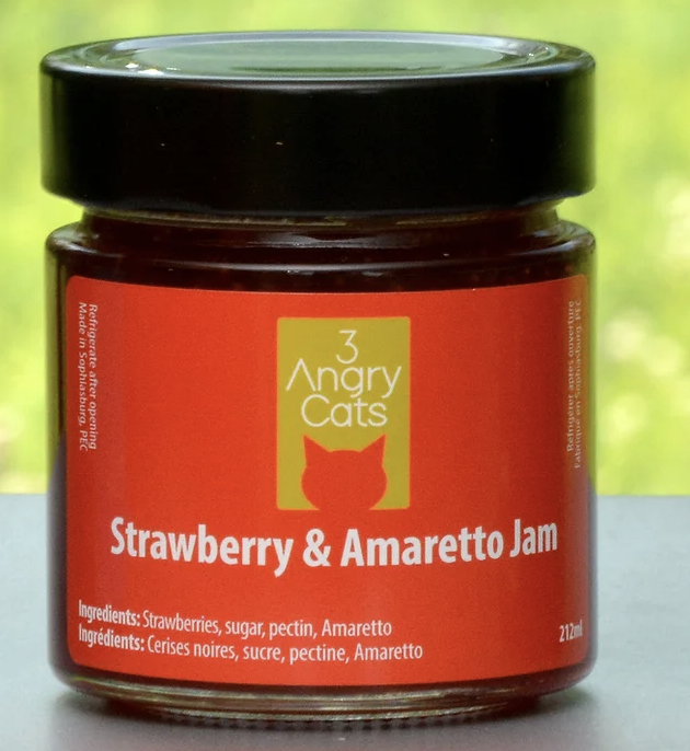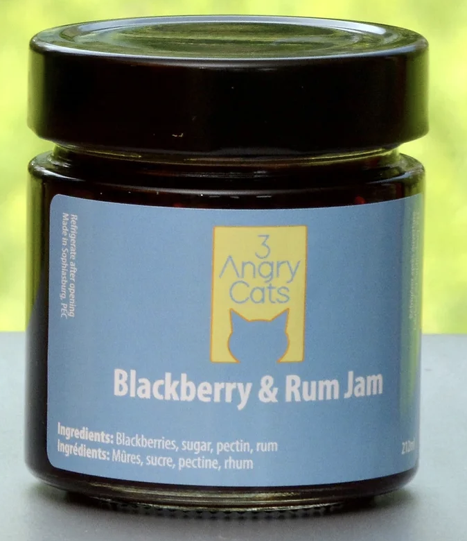 Take advantage of this special on-line pricing of $10 per jar…. regularly $12…  Choose from the drop down menu, six jams with unique flavour profiles with a hint of some booze!!  Small batch production from County maker, Gary.  Original recipes created by 3 Angry cats.  – 250 ml!