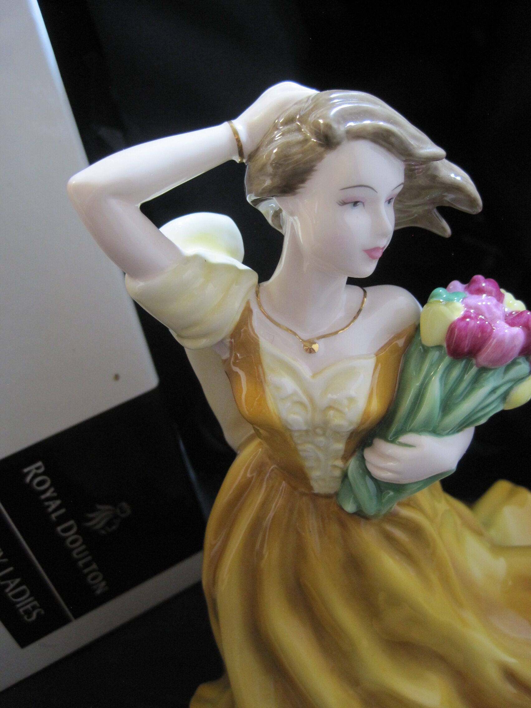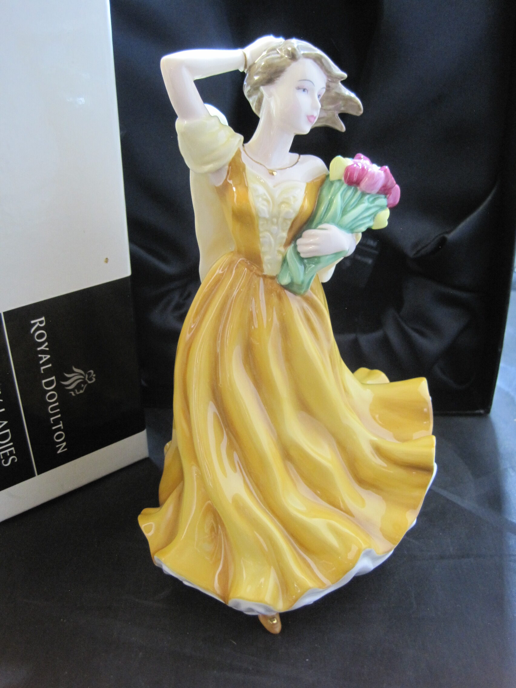 ROYAL DOULTON FIGURINE “JOANNA” HN4711 – Lady in yellow dress carrying a bouquet of tulips. 2005-2006