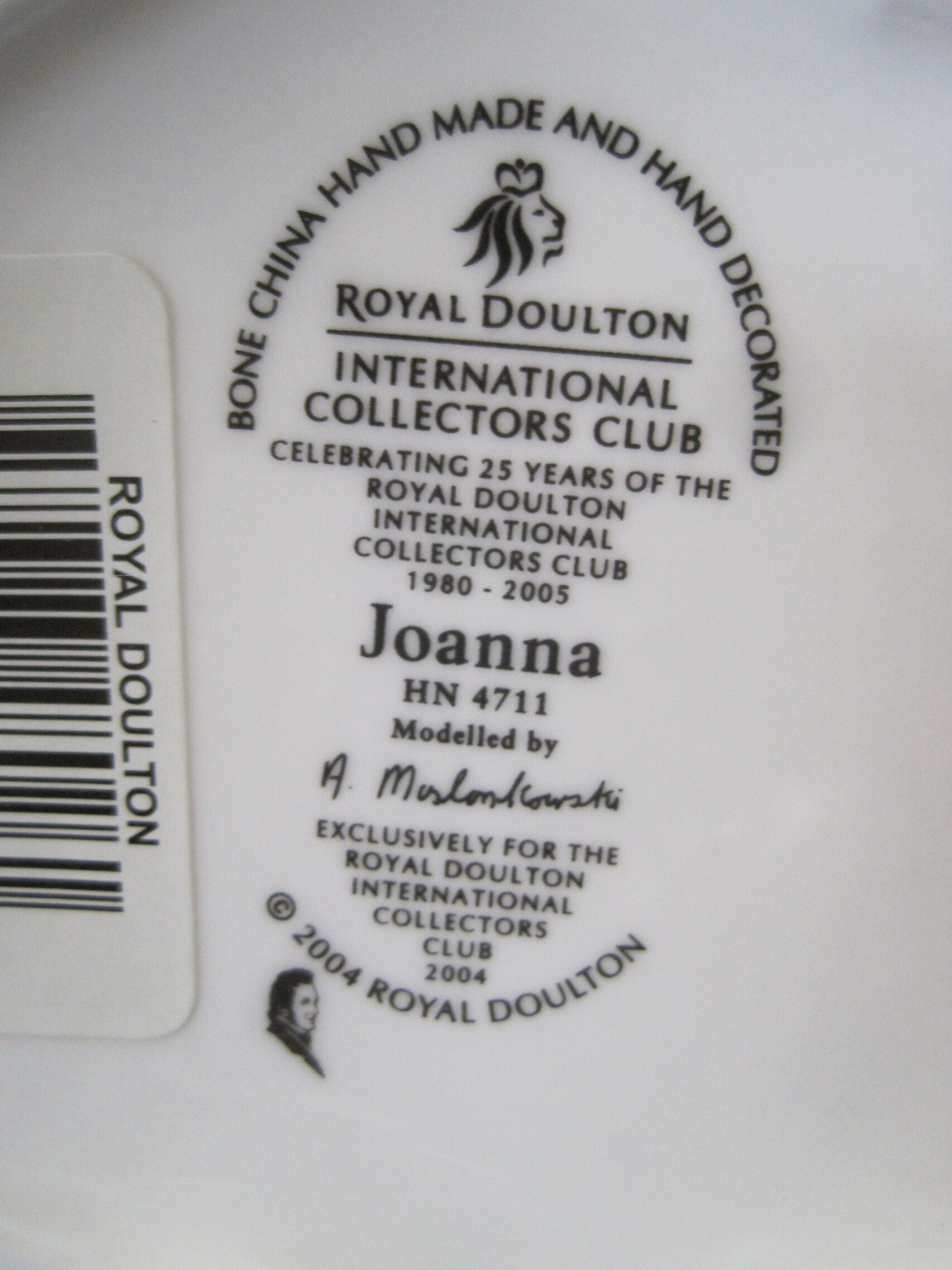 Part of the The Royal Doulton International Collector’s Club, which ceased operations on September 1, 2008, offered members a number of benefits, including a gift of the club member’s choice upon joining or renewing, access to a number of special edition Royal Doulton collectables available exclusively to club members, subscription to the colorful and informative members’ magazine, and free access to the renowned historical enquiry service operated by Royal Doulton’s own expert museum staff..