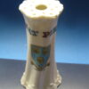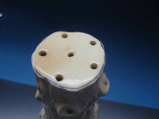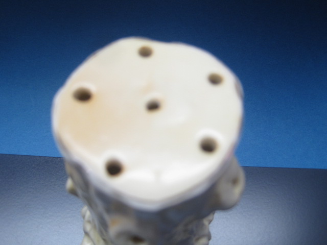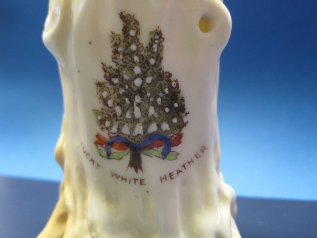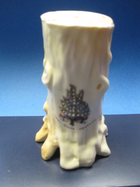 Unknown maker – probably made in Germany for the Scottish market. Says ” Lucky White Heather” transferware background that is hand painted. 4 inches high. Most likely made in the early 1900s.