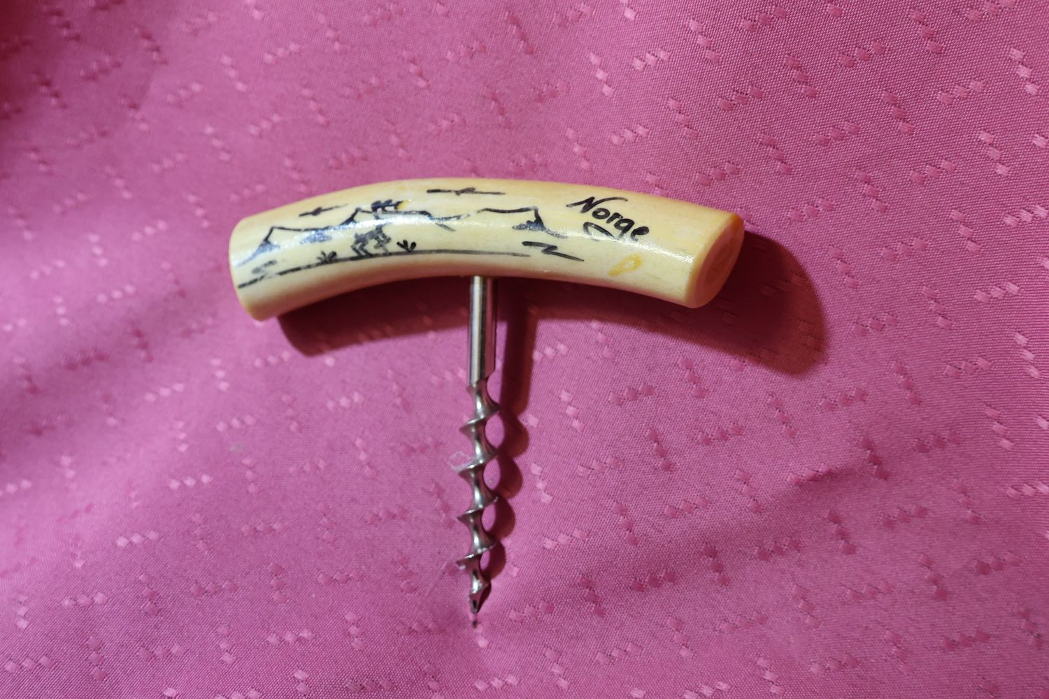 Vintage Norway Bergen Souvenir Wine Opener / Corkscrew Faux Bone Handle Nordic Art