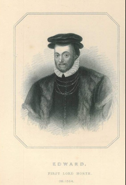 This image is an engraving of Edward North, 1st Baron North (1496–1564), a notable English statesman and lawyer who served during the Tudor period.