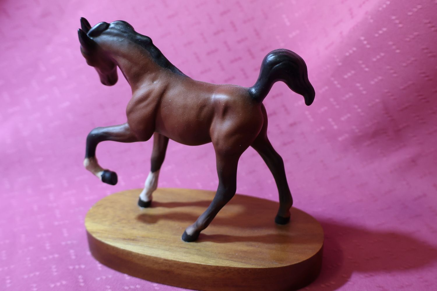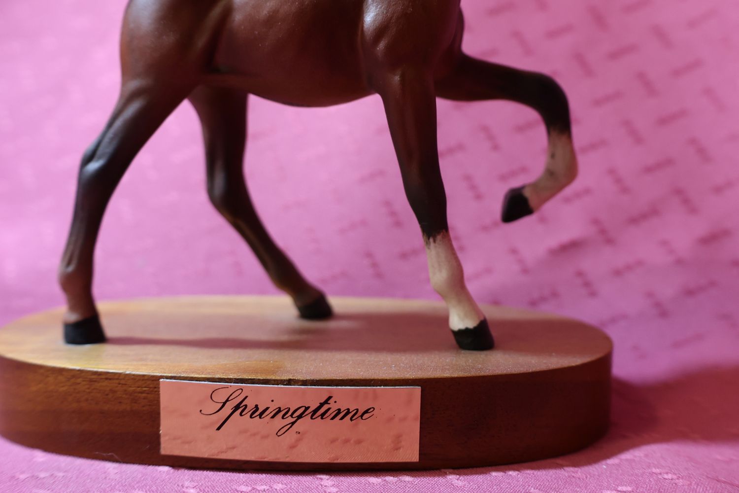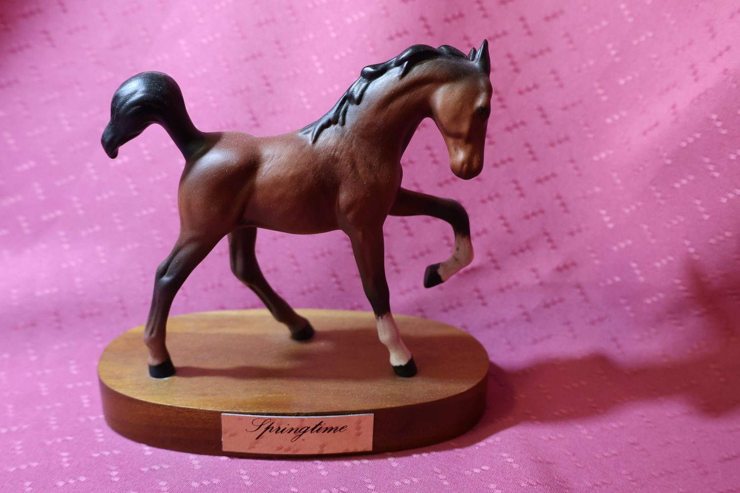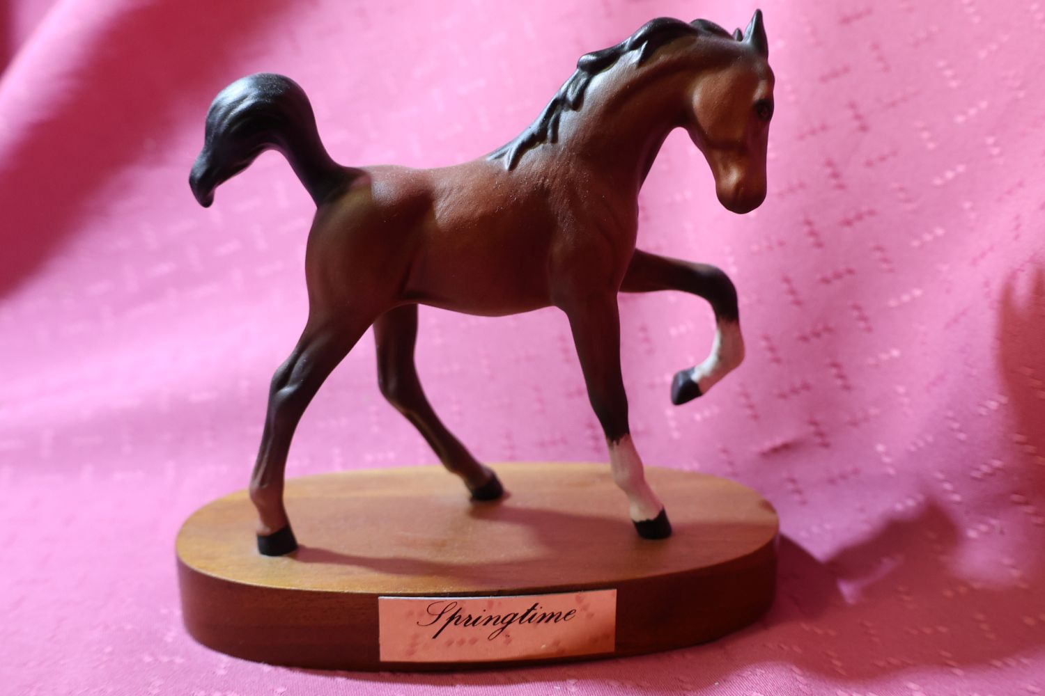“Springtime” ~ A small, vintage figure of a foal on wooden plinth, made by Beswick, Royal Doulton. Matt finish. This was made between 1987-89 in a series called “SPIRITED FOALS SERIES”