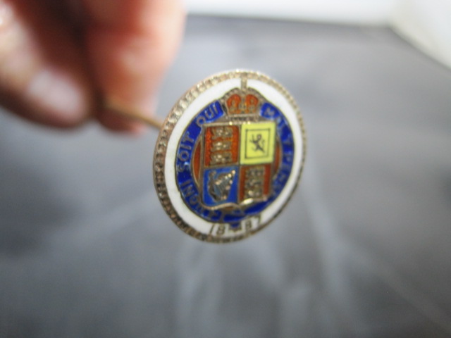 Sterling 1887 Queen Victoria Jubilee One Shilling Enamel Hat Pin