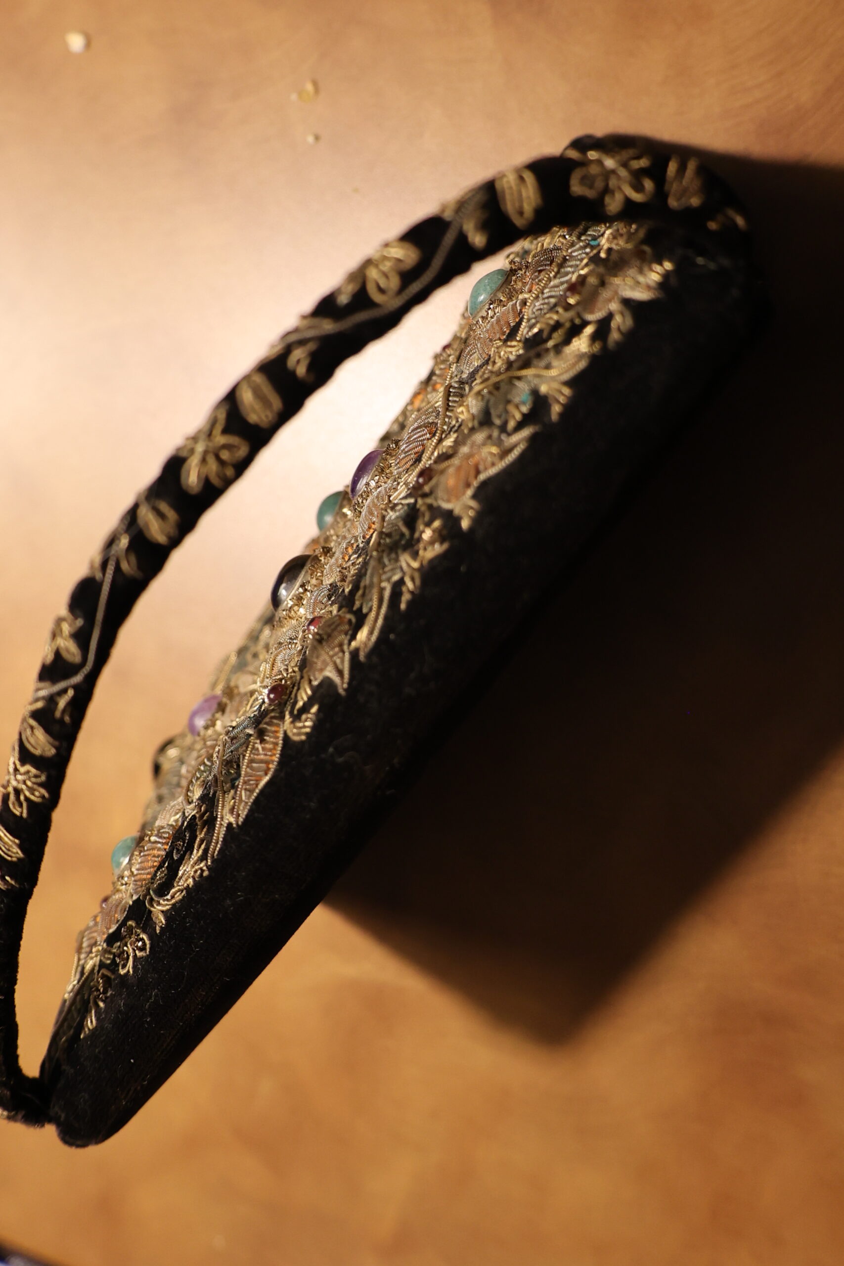 Zardozi Black Velvet Gem Embroidered & Beaded Purse